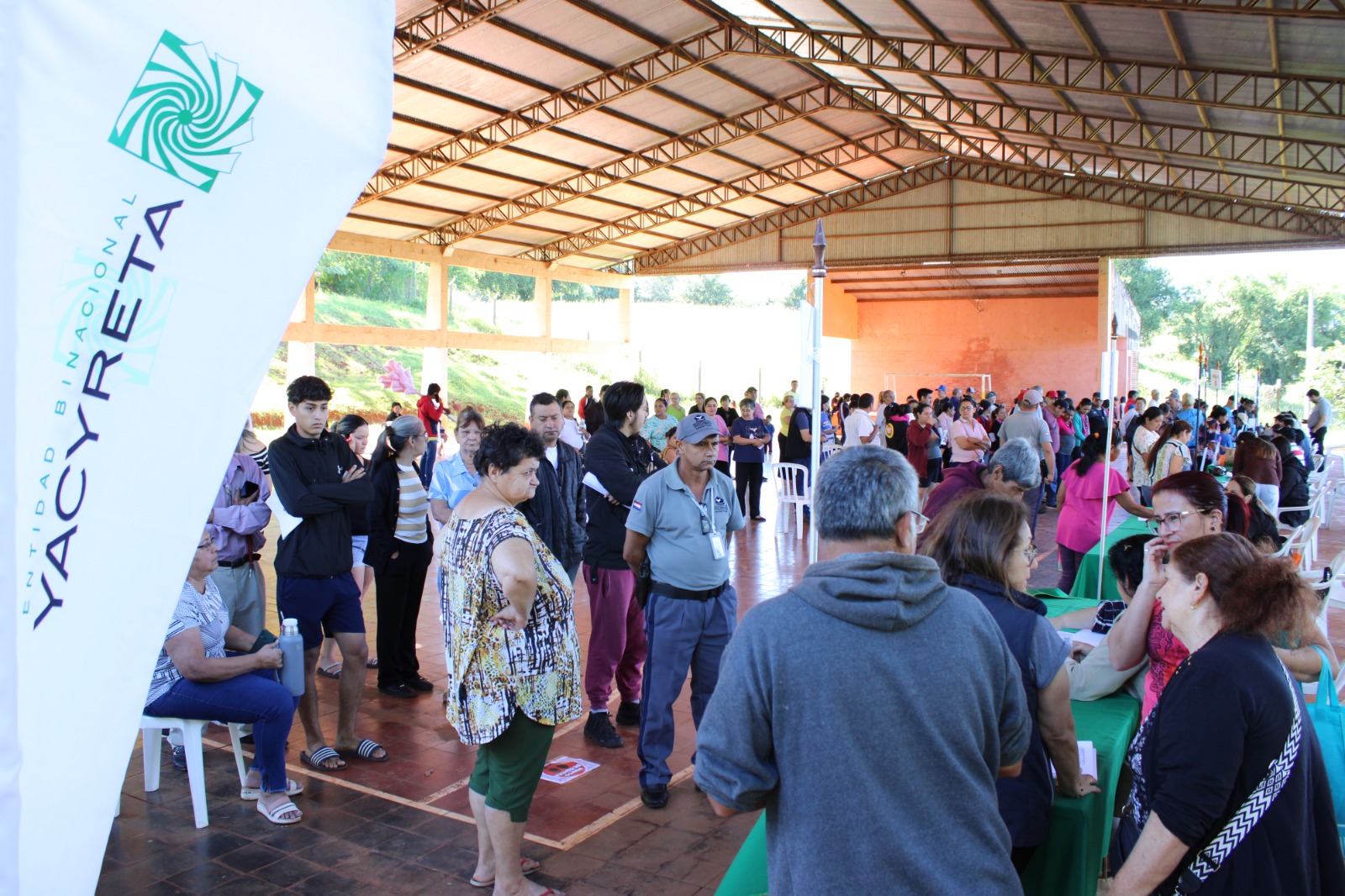 Las familias reasentadas por la Entidad Binacional Yacyretá (EBY) en el conjunto habitacional Arroyo Porá, distrito de Cambyretá, recibieron este día sus bonos sociales de fin de año en el polideportivo del barrio. Los vales, de 300.000 guaraníes cada uno, les permitirán adquirir productos de la canasta básica familiar en comercios habilitados de la zona.