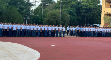 Autoridades policiales, instructores y familiares participaron del acto de bienvenida realizado en la sede de formación policial.